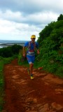 Bereits in der Früh um 7 Uhr ging die „Reise“ weiter, wieder mit einer etwas stürmischen Fährpassage nach Faial und mit dem Bus weiter zum Startort beim Vulkan Capelinhos, der zum letzten Mal 1957 ausbrach und die jüngste europäische Landgewinnung verursachte. Genau auf diesem „Neuland“ startete der „Vulkanoes Sky Marathon“ im weichen Vulkansand über die klassische Marathondistanz über den höchsten Krater der Insel Faial, Cabeco Gordo (1.043 m) und seinen zahlreichen Nebenkratern. Dieser Trailmarathon wurde zusätzlich zum Etappenrennen auch als einzelner Bewerb gewertet und zog somit zahlreiche einheimische Läufer an den Start. Ausgerechnet zur Startzeit um 11.30 Uhr ging ein heftiger Gewittersturm nieder. Auch eine etwa 15minütige Startverschiebung brachte kaum Besserung. Die Läuferschar schlängelte sich von Krater zu Krater, durch Lavafelder, farbenprächtig mit ihren bunten Regenjacken in Richtung Gipfel, ehe sich nach Wetterbesserung der letzte Downhill Richtung Horta, dem Hauptort der Insel Faial, fortsetzte. Stephan Tassani-Prell fand am letzten Tag zu gewohnter Stärke zurück und erreichte als Gesamt-Siebter und Fünfter aller Etappenläufer das Ziel vor der malerischen Kathedrale von Horta. Im Gesamtklassement bedeutete dies einen ausgezeichneten fünften Gesamtrang (2. Platz M45) in 10:49 Stunden.