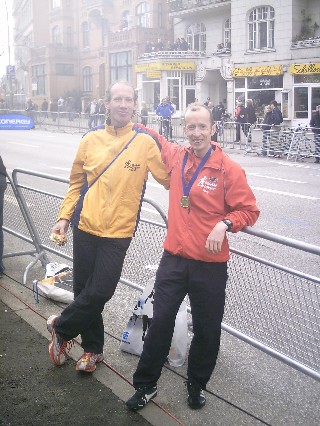 Christian Fellermeier und Hermann Heß starteten beim Marathon in Hamburg. Christian erreichte mit 2:32:55